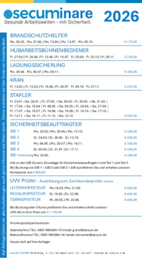 Auf Anfrage führen wir alle Ausbildungen auch gerne Inhouse bei Ihnen durch. Gerne erstellen wir hier Ihnen ein Gesamtpaket. inare 2026 BRANDSCHUTZHELFER Mo. 02.03. |Mo. 27.04. |Mo. 15.06. |Mo. 13.07